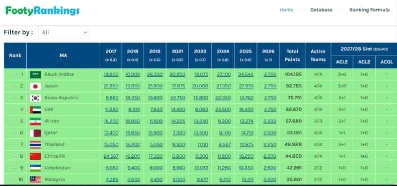 این صعود به معنای افزایش سهمیه فوتبال ما در فصل ۲۰۲۷-۲۰۲۸ لیگ نخبگان آسیا از ۱+۱ به ۱+۲ است. پیش از این قطر در رده پنجم قرار داشت.