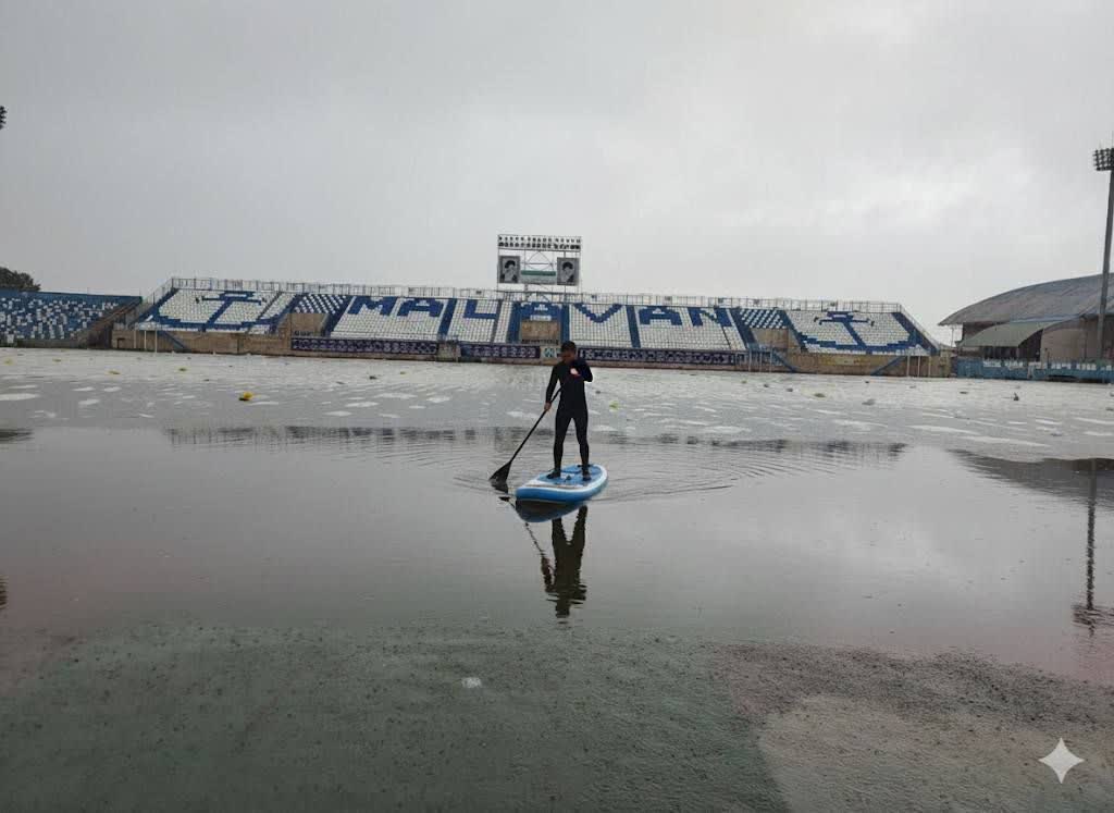 بارش شدید باران دیدار دو تیم ملوان و خیبر را لغو کرد.