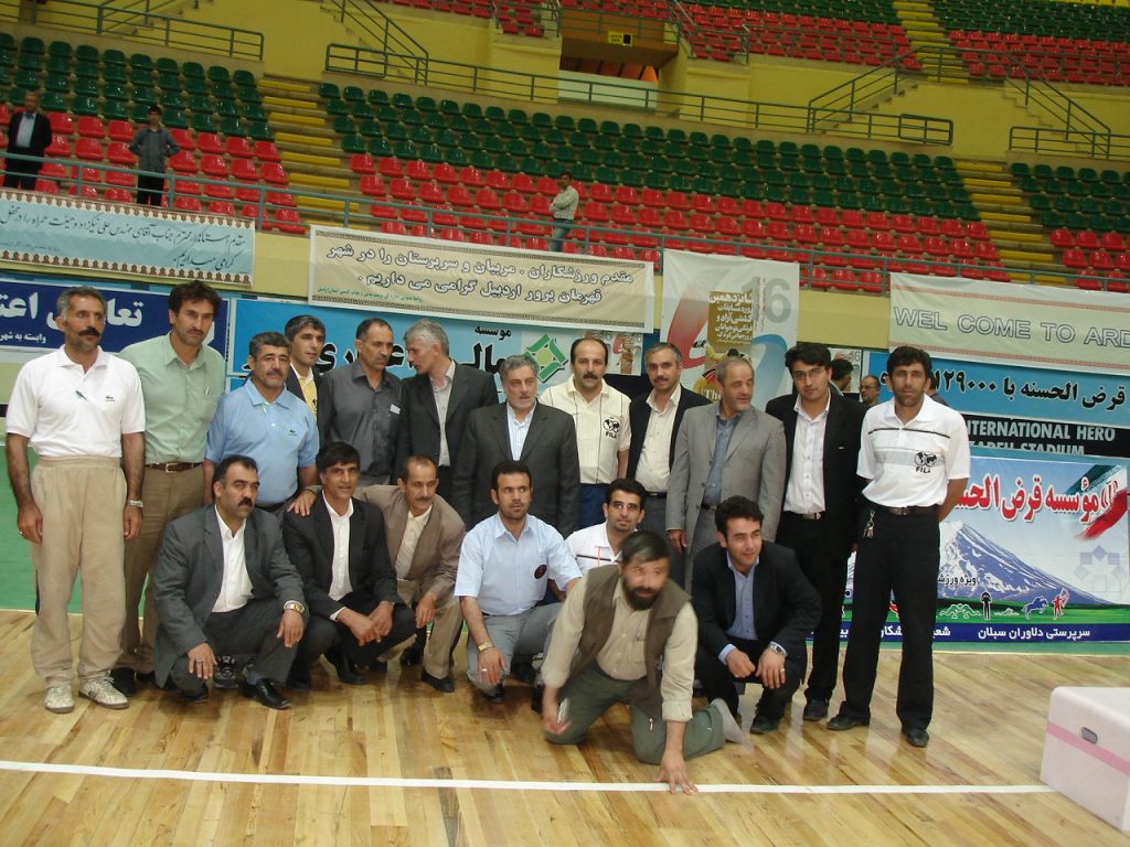 عکس3: جمعی از زحمتکشان مسابقه به همراه حاج یزدانی رئیس فدراسیون کشتی و اسبقیان مدیر کل وقت تربیت بدنی